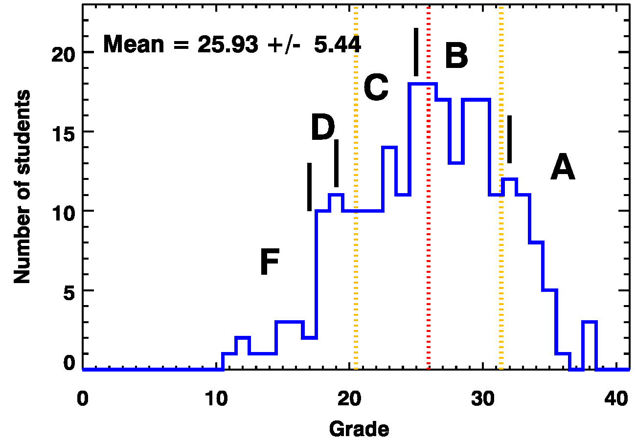 As before, the grades assigned to exam scores are only an approximate guide. Final course grades will be based on numerical results, not these letter grades.