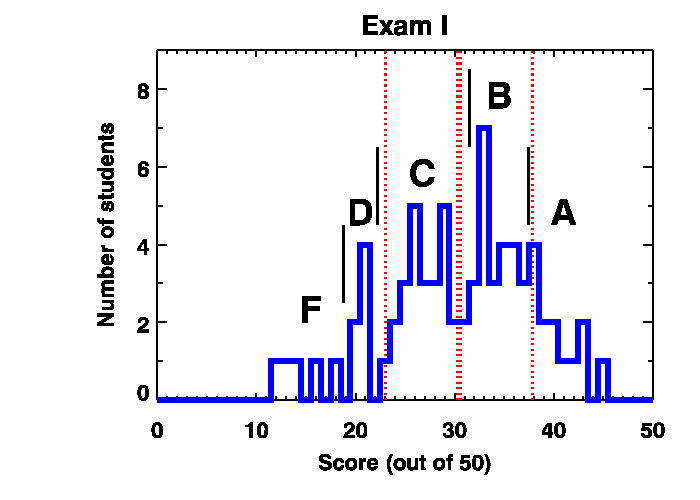 Use the grades assigned to the exam scores as an approximate guide. Final course grades will be based on numerical results, not these letter grades.